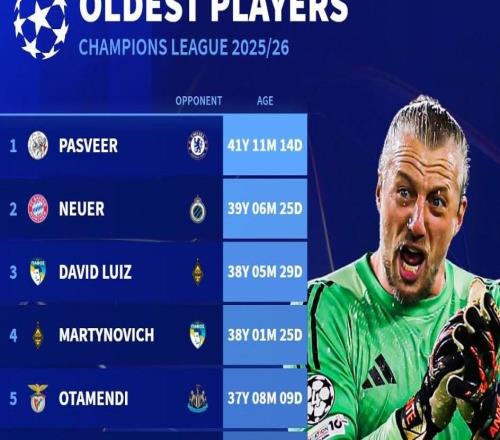 北京时间10月25日,德转统计出了本赛季至今欧冠出场最年长的10名球员,阿贾克斯的门将帕斯维尔第一,诺伊尔第二,目前效力于塞浦路斯球队帕福斯的大卫-路易斯第三。本赛季欧冠最年